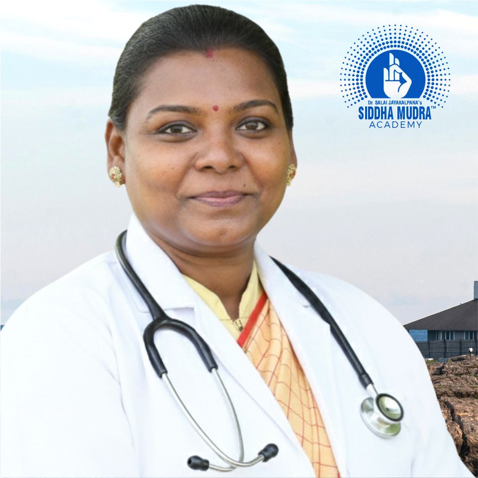 Dr. Salai Jayakalpana (widely known as Dr. Saalai JK) is a trailblazing Siddha Doctor, International Mudra Trainer, and Researcher with over two decades of clinical excellence. She is the visionary behind Siddha Mudra Therapy, a healing technique rooted in ancient Siddha wisdom and validated through modern scientific research.